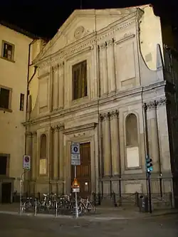 From 1351 to 1554, the church was known as San Giovanni Evangelista, since the site had a small oratory dedicated to the saint. In the mid-16th century, Cosimo I applied the inheritance of a Giovanni di Lando of the neighboring Gori family to the erection of a church for the newly arrived Jesuits (1557). Construction began in 1579 on designs of Bartolommeo Ammannati, afterwards supplanted by Giulio Parigi and finally Alfonso Parigi il Giovane, who completed the work in 1661. The Jesuit Order was suppressed in 1775, and the church was passed to the Piarist or Scolopi Fathers. It was restored in 1843 by Leopoldo Pasqui.