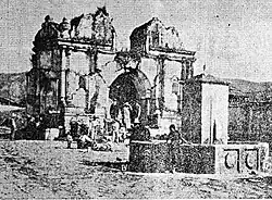 San Pedro Sacatepéquez catholic church ruins in 1925. It was destroyed along the rest of the town by the 1902 Volcán Santa María eruption.