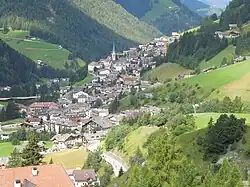 Santa Cristina Gherdëina (Ladin: [ˈsanta kʀ̩̊ʃˈtina ɡʀ̩ˈdɜi̯na] ⓘ; Italian: Santa Cristina Valgardena [ˈsanta kriˈstiːna ˌvalɡarˈdeːna, - ˌvalɡarˈdɛːna]; German: St. Christina in Gröden [saŋkt krɪsˈtiˑna ɪn ˈɡrøːdn̩]) is a Ladin comune (municipality) and a village in Val Gardena in the South Tyrol of northern Italy. It is located about 30 kilometres (19 mi) east of Bolzano. Its Saslong ski run is home of the Super-G and Downhill for men races in FIS Alpine Ski World Cup.