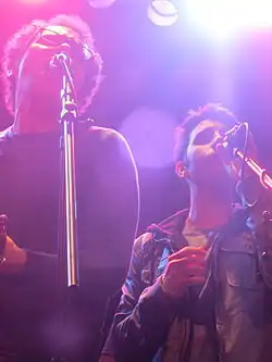 A Great Big World and Aguilera also performed the song at the 2013 American Music Awards on November 24, 2013.[56] With her hair in a braid and wearing a muted black dress, Aguilera sang an original verse midway through the performance, which included a string section and a fairly bare stage. With A Great Big World's Chad King manning the keyboard, the group's Ian Axel sat at the grand piano and stamped his feet furiously as 'Say Something' approached its emotional climax," according to Billboard's Jason Lipshutz.[57] Lindsay Dreyer of Wetpaint wrote that "Taking her rightful place center stage in a floor-length black dress and braided updo, the 32-year-old pop diva harmonized perfectly with the group's lead singer Ian Axel, who worked the piano with passion and poise. Xtina's rich yet breathy tone offered just the right amount of strength and vulnerability — a side of Christina we haven't seen in a really long time." Dreyer finished the review stating, "If tonight's AMA performance is any indication, Christina is on the brink of a major music comeback — and we can't wait!."[58] The band also performed the song at the 2013 Victoria's Secret Fashion Show on December 10, 2013.[59] However, Aguilera did not perform the song with them as a duet, due to scheduling conflicts of The Voice.[60] Aguilera also performed the song in Malaysia in a private concert without the band on March 28. The duo and Aguilera also performed the song during the New Orleans Jazz Festival. She gave a one-and-a-half-hour-long show and then invited the band to perform the song in front of a large crowd on May 2, 2014.[61] The band (sans Aguilera) sang the song on the September 6 episode of Last Week Tonight in a duet with comedian John Oliver to mourn the loss of the Russian space geckos.