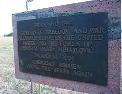 After the end of World War II, the Federal People's Republic of Yugoslavia (FNRJ) was formed. One of the first diplomatic contacts made with the new communist government was the US Department of State's request for the US Army to testify at the Mihailović trial.[19] However, the request was shunned and early relations between the United States and the government of Josip Broz Tito became strained, as American diplomats were furious over Mihailović's execution in 1946.[20][21] Relations degraded even further a month later, when two USAF C-47 Skytrain cargo aircraft were shot down over Yugoslavia in the space of two weeks.[22] More USAF aircraft were shot down over Yugoslavia up to 1948.[23] As a result, U.S. senator Thomas Dodd staunchly opposed American financial aid to Tito's government,[24] even saying that "Tito had bloodied hands." In one of Josip Broz Tito's early visits to the United States, protesters in San Pedro drowned an effigy of him.[25] Following the Second World War into 1961, the United States operated a Military Assistance Advisory Group (MAAG) and many Yugoslavian officers received American training. Along with receiving many American weapons, Yugoslavia received US$600 million in military aid.[26]