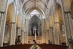 Sterne began his education at Jesus College, Cambridge in 1733 and received his orders in August 1738.[2] His first clerical position was as assistant curate of St. Ives in 1737, and the next year he became the vicar at Sutton-on-the-Forest, where he remained until 1760.[3] There, he served about 120 families of parishioners with two services on Sundays.[4] Sterne's role as prebendary of York obliged him to give two sermons a year at York Minster, though some years he gave more than twenty.[5] The extra sermons may have reflected a particular skill for preaching, or a particular interest in earning extra income.[5] Sterne delivered hundreds of sermons across his career, most of which have not been preserved.[6][7]