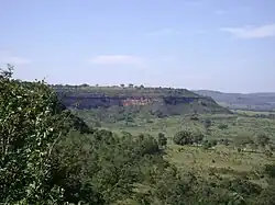 Its rocks are composed of sandstones of the Adamantina Formation supported by more solid sandstones of the MarĂlia Formation.