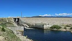 Shadow Mountain Dam[1] is a zoned earth-fill dam on the Colorado River in Grand County, Colorado. Constructed between 1944 and 1946, the Shadow Mountain Dam creates the Shadow Mountain Lake, with a structural height of 63 feet (19 m) and a drainage area of 187 square miles (480 km2). Shadow Mountain Lake is a holding reservoir for water pumped up from Lake Granby just to the south through the Granby Pumping Plant and Canal. Shadow Mountain Lake is connected by a short channel to the natural Grand Lake. The west portal of the Alva B. Adams Tunnel is located on Grand Lake. The Adams Tunnel diverts west slope water to the east slope of the Rocky Mountains for use in agriculture and to serve the populated areas of Colorado, including Denver.[2]