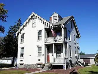 Built in 1862, this historic structure is a 2+12-story, T-shaped,brick dwelling that was designed in the Gothic Revival style. It sits on a granite foundation, has a cross gable roof, and features an ornamental fascia board and porches with ornamental balustrades. Shortly after it was built, it housed the Oak Ridge Seminary, a girls' school.