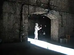 The Shunt Lounge was designed as a break that would give the company time to catch their breath but not completely give them a hiatus. [2] "Attendees enter through a service door near the London Bridge Station and go through a series of tunnels and corridors that have pieces of past sets and dressings. Also in the corridor, there can be found films, performance and art that differ from week to week. The crowd has the freedom to explore anywhere in the tunnels. And, hopefully end up at a bar, where there is music, and time to socialize. Twitchin says, "It's not advertised, there are no reviews, you pay to come into the space… and then you have access to everything for free. So, whether it's Station house Opera trying something out, or an opportunity to tattoo bananas, there's no prior judgment. That's important where artists are experimenting with an idea".[2]