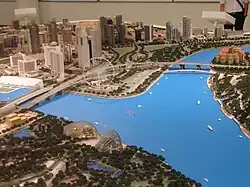 The gallery, which had an initial cost of 4.2 million Singapore dollars, was opened on 27 January 1999 by Lim Hng Kiang, who was National Development Minister at the time.[2] The gallery was initially projected to attract 36,000 visitors a year over the first three years of its existence, most of whom were expected to be students or local community groups.[2] In 2004, the gallery underwent a major renovation of 80% of its exhibits. Upon its reopening on 3 December 2004, the Gallery was renamed the Singapore City Gallery. The Gallery's key exhibit, the Central Area Model, was also expanded to include areas which were formerly not shown, such as Orchard Road, Kampong Glam, Little India, Bras Basah, and Bugis. The model was also updated to include the latest plans for Marina Bay.[4] In 2008, the Gallery received its millionth visitor.[5] In 2011, the gallery was redesigned again, and reopened in August of that year, to include new exhibits such as a 270-degree panorama of life in Singapore and an 8-player multimedia game on urban planning. This latest version won honours in the Singapore Design Award 2012 for both the Events/Exhibitions category and the Multidisciplinary Design category.[6][7] The Gallery now receives about 150,000 visitors annually.[3]