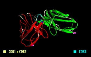 Rotating scFv fragment with highlighted complementarity determining regions (CDRs)
