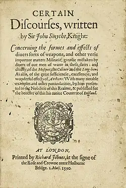 11. ^ Smythe's letter: Ellis, Henry, ed. (1843). "Sir John Smyth, imprisoned in the Tower, to Lord Burghley; owing the details of his recent offensive behaviour, and entreating pardon". Original letters of eminent literary men of the sixteenth, seventeenth, and eighteenth centuries. Camden Society. Vol. 23. pp. 88–97.