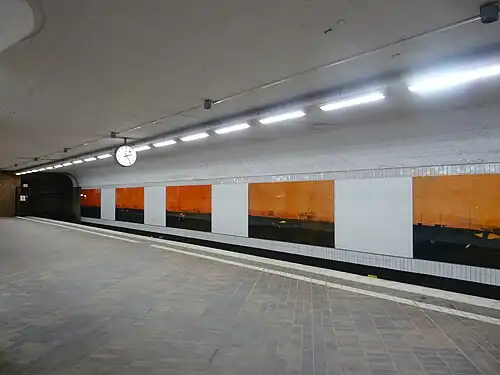 Skärholmen metro station is a station on the red line of the Stockholm metro, located in the district of Skärholmen. The station was opened on 1 March 1967 as the south terminus of an extension from Sätra.[2] The distance to Slussen is 11.7 km (7.3 mi).