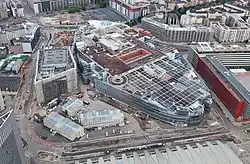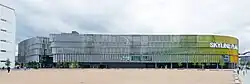 The oval-shaped building with a total of 38,000 square meters of sales floor on two levels and around 2,400 parking spaces opened on 29 August 2013. A unique attraction is a public park-like area on top of the building with a restaurant, a playground and green areas (Skyline Garden).[2][3] A separate fitness and spa area, operated by MeridianSpa, opened on 1 February 2014.[4]