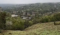 In 1838, Domingo Sais received a land grant from General Mariano Vallejo known as Cañada de Herrera, which consisted of 6,659 acres (2,695 ha) covering what is now Sleepy Hollow, Fairfax and segments of San Anselmo.[6] In the 1850s, Sais leased the majority of the land that is now Sleepy Hollow to Harvey Butterfield. Butterfield started a dairy farm on the land, and the long, winding 2-mile trail that is still to this day the only way in and out of the inclusive community became known as "Butterfield's Road". The next person to acquire the land was a man named Peter Austin who was responsible for planting the multitude of poplar and eucalyptus trees that now line the road.[7] Due to foreclosure, Austin was forced to sell the land to the Hotalings, a wealthy family from San Francisco. The Hotalings built a lavish mansion at the end of the two-mile road, and named it "Sleepy Hollow" in honor of "The Legend of Sleepy Hollow", a famous short story written by their friend, author Washington Irving. The Hotalings threw many elaborate parties for hundreds of guests, but soon left the mansion and returned to San Francisco. The next owner of the mansion was Sigmund Herzog, who founded a dairy farm on the property. Later a Chicago syndicate bought the land and attempted to create a luxury hotel complete with golf course, pool, and private man-made lake, but this idea quickly fell through due to the stock market crash prior to the Great Depression.[8]