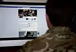 A soldier in London browses social media during 2012: use of the internet and computerised technology has expanded from a rare novelty in the 1970s to being ubiquitous in almost all aspects of life today.