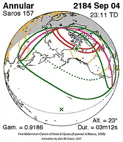 - ^ van Gent, R.H. "Solar- and Lunar-Eclipse Predictions from Antiquity to the Present". A Catalogue of Eclipse Cycles. Utrecht University. Retrieved 6 October 2018.
