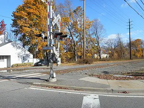 A railroad station named South Farmingdale previously existed in the hamlet on the Central Branch of the Long Island Rail Road.[6] It had originally opened in 1873 and closed in 1898, and then reopened in 1936 and closed for the final time in 1972.[6][7]
