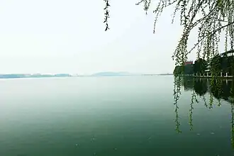 South Lake (Chinese: 武汉南湖) is a subtropical shallow freshwater lake located in Nanhu Subdistrict, in the southern suburbs of Wuchang, Wuhan, Hubei Province, China. It has an average depth of 1.6 metres, lake bottom elevation 18 m, the width of the lake is about 15.4 km long, the length of the lake is about 5.4 km wide, area of 5km².
