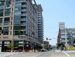 At the beginning of the 21st century the area began to rapidly transform with infill development.[1] Luxury apartments and condominiums with ground floor retail began construction in the 2000s.[2] The district's proximity to the University of Southern California, as well as the A Line and E Line light rail lines, have made it an attractive area for young professionals. As with many neighborhood transformations, this change in demographics has many concerned about displacement and gentrification issues.
