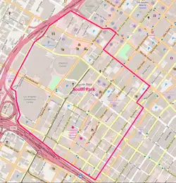 The boundaries of the business improvement district (or 'BID') in Los Angeles of the name "South Park".