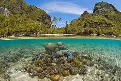Southwest Papua is situated on the northwestern side of the region known as the Doberai Peninsula, or the Bird's Head Peninsula. The province's westernmost point encompasses the protected region of the Raja Ampat Islands, which boasts a rich variety of marine creatures, including coral reefs, leatherback sea turtles, manta rays, and whale sharks.[9][10] The province of Southwest Papua is centered around its capital, Sorong, which serves as an important hub for the region's oil and gas industry and a gateway to Papua. With modern port and airport facilities, Sorong is one of the most developed cities in Papua.[11] The province of Southwest Papua is home to various preserved ecosystems, including tropical rainforests and mountains. Tambrauw Regency, in particular, is a popular birdwatching destination and has declared its area as Conservation Regency in order to promote ecotourism.[12][13]