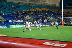 The Gold Coast occasionally hosted NRL matches between 1999 and 2005, and established the Gold Coast Titans in 2006 to enter the National Rugby League in 2007. The Titans have played at Robina Stadium since 2008, spending the 2007 season based at Carrara Stadium. Like its predecessors, the Titans' have struggled with its finances. It had fallen into $35 million debt by mid-2012,[12] and according to chairwoman Rebecca Frizelle the club was just weeks away from folding.[13] In 2015, the NRL took over financial administration of the struggling club.[14] The 2021 NRL Finals Series had the Gold Coast Titans played the Sydney Roosters, with the Roosters slightly knocking the Titans out of the finals.[15]