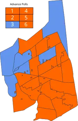 Winning party in each polling division of St. Catharines at the 2025 Ontario general election