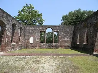 St. Philip's Church, Brunswick Town, is a ruined parish church in Brunswick County, North Carolina, United States. The Anglican church was erected in 1768 and destroyed in 1776.[2] The ruins are located beside the Cape Fear River in the Brunswick Town Historic District, along with Fort Anderson, Russelborough, and the nearby Orton Plantation. During the American Revolutionary War, British forces attacked Brunswick Town in 1776 and burned the church.[3] Before its demise, the church was considered one of the finest religious structures in North Carolina.[4] On February 26, 1970, the historic site was added to the National Register of Historic Places.[1]