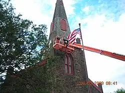 Wu & Associates, Inc, the selected preservation contractor from nearby Cherry Hill, New Jersey, focused on restoring the church's “beacon” feature, the steeple. Following a lightning strike in 1983 the structure burned down two-thirds of the way. While the immediate problem was solved with a lightning rod, the replacement cedar shakes continued to be damaged by area wildlife.