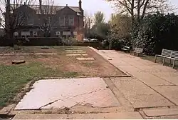 The old St Clement's churchyard is next to the Bowling Green Hotel although interments ceased in 1882 except for spaces in existing graves. It was in use for about 160 years. The extant burial registers begin in 1753 and end in 1916 although the Rev John Edmund Booth said there was a gravestone dated 1660. By 1881 re-burials caused a scandal which was resolved by the appointment of a Home Office inspector in November of that year. He recommended an order be made to close the burial ground to new interments, save for certain exceptions. The order was made in 1882. In 1930 bodies remaining in the churchyard were exhumed and buried in Southern Cemetery, Manchester. By the 1980s, when the site of the church was excavated and the churchyard landscaped, the churchyard contained 380 gravestones some of which were used to make a path and others were left in place.[7][8] Two clergymen who ministered in Chorlton, John Morton and John Edmund Booth, were buried in the churchyard and their gravestones are extant.