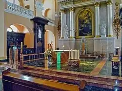 Another modification was performed in 1880. The towers were rearranged and a romantic balustrade was added. In the 1970s the interior was refurbished and, together with the façade, was painted. The exterior was renovated in 1999. In 2003 a new pipe organ was installed.