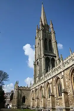 The church is a medieval building. It has the tallest steeple of any medieval parish church in Britain. A recent survey has confirmed the height of the stonework as 287 feet 6 inches (87.63 m) and to the top of the cockerel weather vane as 293 feet 1 inch (89.33 m). It also confirms it as one of the very finest medieval steeples in the country[4]