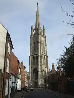 The church and spire seen from the town centre