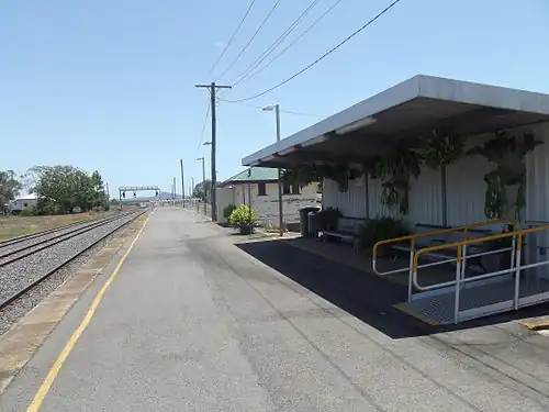St Lawrence railway station is located on the North Coast line in Queensland, Australia. It serves the town of St Lawrence. Opposite the single platform lie two crossing loops.