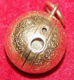 A stanhope or stanho-scope is an optical device that enables the viewing of microphotographs without using a microscope.[1][2] They were invented by René Dagron in 1857.[1] Dagron bypassed the need for an expensive microscope to view the microscopic photographs by attaching the microphotograph at the end of a modified Stanhope lens.[1] He called the devices bijoux photo-microscopiques or microscopic photo-jewelry.[3]
