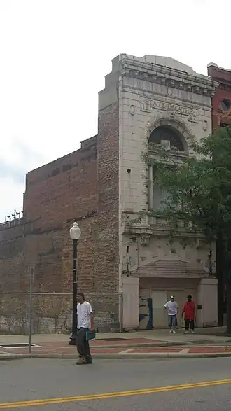 The State Theater was an entertainment venue in Youngstown, Ohio which showed films until the early 1970s and later became a popular night club establishment catering to major rock 'n' roll acts of the 1970s and '80s. The theater opened in 1927 at 213 Federal Plaza West and exhibited films until closing as a movie house in the early 1970s.[1] On October 20, 1974, a night club called the Tomorrow Club opened in the old theater.[2] Under the Tomorrow Club name, the venue hosted such bands as AC/DC, KISS, Rush, Ted Nugent, The Runaways, Talking Heads, etc. Most notably the club played host to The Ramones' first gig outside of the New York City metro area on July 20, 1976.[3] This was also the gig where Joey Ramone was introduced to future members of the Dead Boys who later moved to New York City to set up shop as the house band at CBGB.[4] The Tomorrow Club closed on December 22, 1978 and the venue opened as the Youngstown branch of the Agora concert hall chain on December 31, 1978.[5]The Youngstown Agora continued to book popular rock acts until it closed on July 23, 1982.[6] It reopened under the State Theater and Civic Center name in May 1983, but it closed abruptly again in July 1983.[7] The theater booked heavy metal and hard rock acts under the Star Theatre name from 1984 until early '86 before being bought by a group interested in turning the theater into a showcase for R&B, blues, jazz, hip-hop and soul groups in late 1986. The venue struggled under the Starr Palace name and closed for good in late 1988.[8] The State Theater remained vacant until it was demolished in 2008.[9] Only the facade remains.