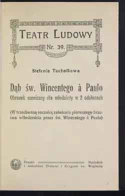 21. ^ Tuchołkowa, Stefania (1917). Dąb św. Wincentego à Paulo : obrazek sceniczny dla młodzieży w 2 odsłonach [The Oak of St. Vincent de Paul: a scenic picture for young people in 2 versions] (in Polish). Poznań: Księgarnia św. Wojciecha.