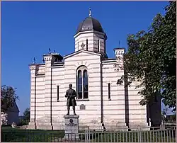 Statue in front of a Serbian Orthodox church in Salaš Noćajski.