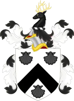 Stukely Westcott first appears on a public record when he was married to Juliann Marchante in St. John's Church in Yeovil, Somerset on October 5, 1619; his marriage record indicated that he was from Ilminster, a town in Somerset about 12 miles west of Yeovil.[5][6] The baptisms of two of Stukely Westcott's children were also recorded in Yeovil, daughter Damaris in 1620/21 and son Samuel in 1622/23.[5][6] There is no record of where Westcott lived following the baptisms of these two children, but there is evidence that he and his family accompanied the family of William Arnold to New England, departing from the port town of Dartmouth in county Devon in 1635, based on a memorandum made in April 1656 by Benedict Arnold, the oldest son of William Arnold.[7][2] Westcott's daughter Damaris married Benedict Arnold several years later.[8]