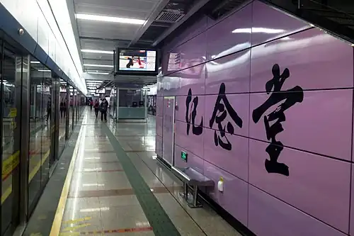Sun Yat-sen Memorial Hall Station (simplified Chinese: 纪念堂站; traditional Chinese: 紀念堂站; Jyutping: gei2 nim6 tong4 zaam6; Cantonese Yale: Géinihmtòhng Jaahm) is a station on Line 2 of the Guangzhou Metro that started operations on 29 December 2002. It is located under Dongfeng Middle Road (东风中路) and Lianxin Road (连新路) in the Yuexiu District of Guangzhou. The station is named for the Sun Yat Sen Memorial Hall, which was established in 1931 in memory of Dr. Sun Yat-Sen, the founder of the Republic of China.[1][2] The English name of the station is the same as that of Sun Yat-sen Memorial Hall Station in Taipei, Taiwan's Metro system.