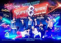 Super Show 8: Infinite Time was the fifth Asia-wide concert tour and eighth tour overall by South Korean boy band Super Junior in support of their ninth studio album, Time_Slip. The world tour commenced with two shows in Seoul from October 12–13, 2019.[1]