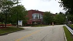 Sussex County Community College is located on a 167-acre (68 ha) hillside campus in Newton, New Jersey that features three ponds (including Horton Pond), and a stream that feeds into the Paulins Kill.[10][11][19][20] Located along Mill Street (also known as County Route 519) between Swartswood Road and Plotts Road, 88.63 acres of the campus are located within Newton, the remainder within neighboring Hampton Township.[21][22] Classes are held in five main academic buildings that feature approximately 60 classrooms, ten computer labs, ten science labs, an art studio, two art galleries, a small student theater and a larger 339-seat space that can be used as a theatre, lecture hall, and performing arts center.[19] The college has a library with over 37,000 bound volumes, 225 print periodicals, and database access to over 28,000 journals and periodicals.[9] SCCC has a television studio facility offering video streaming services for its SCCC/EDTV/20 cable access channel.[23] Further, it will soon launch radio broadcasts on WAMJ on 97.5 FM and 1620 AM.[24] The college also operates a Public Safety Training Academy on Sussex County government property located approximately 5 miles (8.0 km) north of the main campus in Frankford Township. The academy provides educational programs and training to local fire departments, the law enforcement community, emergency medical personnel, government employees, and the general public in all aspects of public safety.[25]