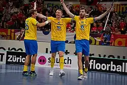 The Sweden men's national floorball team is the national floorball team of Sweden, and a member of the International Floorball Federation. It has won ten out of 15 men's world championships (1996, 1998, 2000, 2002, 2004, 2006, 2012, 2014, 2020 and 2022).[2] They have won silver at every other championship and are the only team that has always played in the final match and are the most successful floorball team overall.