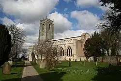 He was curate of St Mary and St Martin's Church, Blyth, 1894–1898.[3][14][26] On 10 June 1896 he was best man at the wedding of Reverend F.W. Keene, vicar of St John the Baptist church, Misson, Nottinghamshire, where the bridal party wore satin, silk and velvet and carried gifts of gold, refreshments were provided by Buzzard of Oxford Street, and the married couple were to honeymoon on the Continent.[27] When he left Blyth Church, he was presented on Monday 25 June 1898 by 200 people from the parishes of Blyth, Ranskill and Barnby Moor with an illustrated address and a gift of "solid silver communion plate and candlestick enclosed in a handsome leather bag, suitably inscribed, together with a purse containing thirty sovereigns." Around the same time, the Ranskill Ambulance Association presented him with a brass inkstand and letter holder.[28]