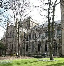 From 1905 to 1908 Elliston undertook a major re-ordering of the chancel. Using the designs of C. Hodgson Fowler, he raised the floor, replaced the chancel steps, and extended the choir stalls. Using oak and the same architect, he added a chancel screen, panelling, a retable and a new altar.[29]