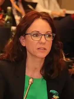On 14 January 2014, left-wing opposition parties agreed to submit a joint list (Unity) for the spring general election. Co-leader of the Dialogue for Hungary (PM) Tímea Szabó was placed fifth on the joint national list of the MSZP, E14-PM, DK and Liberals.[9] She was elected MP in the 2014 national election and did not join any parliamentary groups. She became a member of the Committee on Welfare.[2] She ran as a joint individual candidate of the Dialogue for Hungary and the Hungarian Socialist Party (MSZP) in the 2018 Hungarian parliamentary election. She defeated Fidesz candidate Erzsébet Menczer and became MP for Óbuda-Békásmegyer (Budapest Constituency X). Her party was able to form a parliamentary group and she was elected leader of the party's caucus.[2]