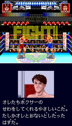 TKO is the abbreviation of "Technical Knock Out". The two titles are nearly identical, however the North American and PAL Region localizations of the game contain some differences from the original Japanese version. The characters are different, in the Japanese version there is a story mode where the player controls a unique boxer, while the other 13 boxers can only be chosen in the one-player (only as an opponent) and two-player mode, the player can also change the controller buttons and set the number of rounds (only four and ten) in the options mode. In the North American and European versions, eight boxers can be chosen from the very beginning in all modes (championship, 1p and 2p), and it is possible to choose one to ten rounds and set the difficulty level through the options.[3]