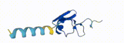 The unprocessed form of the peptide has a signal peptide of 20 amino acids at the N-terminus. Furthermore, this unprocessed sequence of Tb1 has a three-amino acid tail following the modified residue at the C-terminus. Thus, this unprocessed sequence contains 84 amino acids and has a molecular mass of 9,384 Da.[2] Like most sodium-channel scorpion toxins,[4] the Tb1 peptide has four disulfide bonds.[2] For Tb1, these are located between amino acids 31 and 81, 35 and 57, 43 and 62, and 47 and 64. The domain of the Tb1 protein is characterized by an alpha-helix connected to antiparallel beta-sheets by these disulfide bonds.[2]