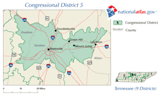 Following the 1950 census, Tennessee expanded briefly to ten districts. Even though it has since contracted back to nine districts, that marked the beginning of the continuous period where the 5th district was centered on Davidson County/Nashville.[18]
