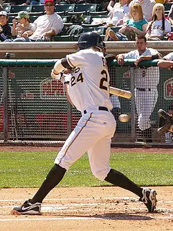 ![]() Evans batting for the Salt Lake Bees, Triple-A affiliates of the Los Angeles Angels of Anaheim, on April 12, 2009 | |