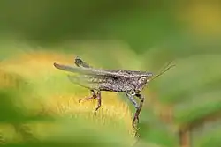 Tetrigidae[1] is an ancient family in the order Orthoptera,[2] which also includes similar families such as crickets, grasshoppers, and their allies. Species within the Tetrigidae are variously called groundhoppers,[3] pygmy grasshoppers,[4] pygmy devils[5] or (mostly historical) "grouse locusts".[6]