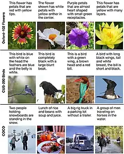 Training a text-to-image model requires a dataset of images paired with text captions. One dataset commonly used for this purpose is the COCO dataset. Released by Microsoft in 2014, COCO consists of around 123,000 images depicting a diversity of objects with five captions per image, generated by human annotators. Originally, the main focus of COCO was on the recognition of objects and scenes in images. Oxford-120 Flowers and CUB-200 Birds are smaller datasets of around 10,000 images each, restricted to flowers and birds, respectively. It is considered less difficult to train a high-quality text-to-image model with these datasets because of their narrow range of subject matter.[7]